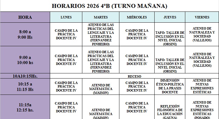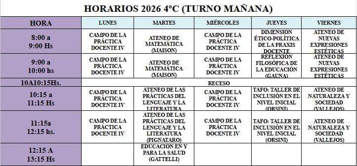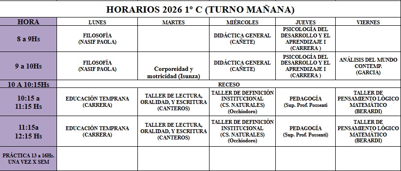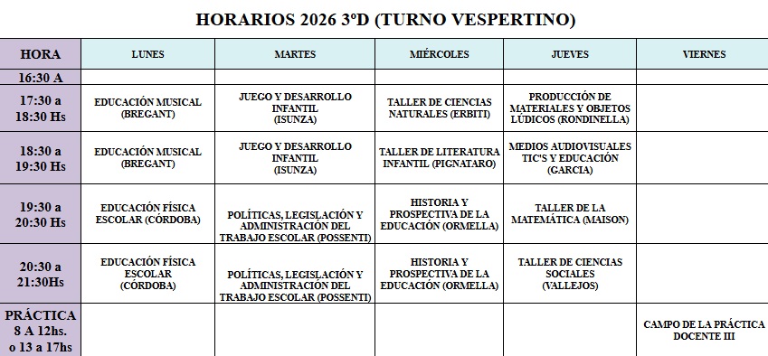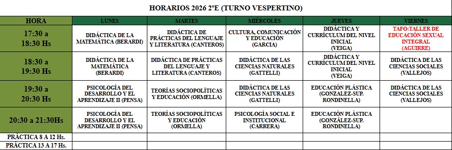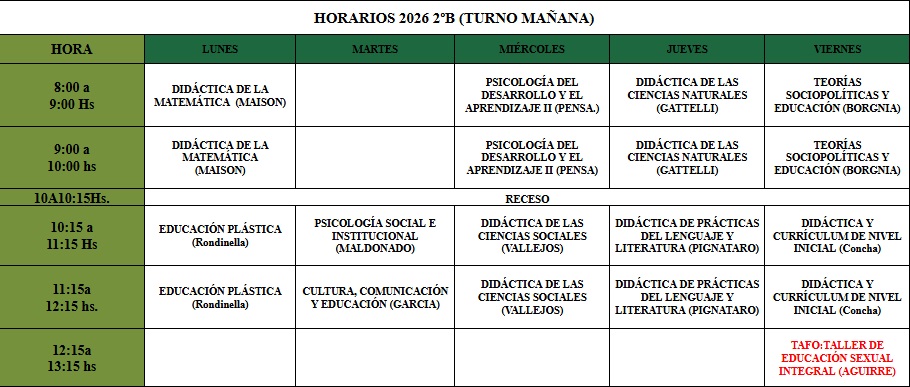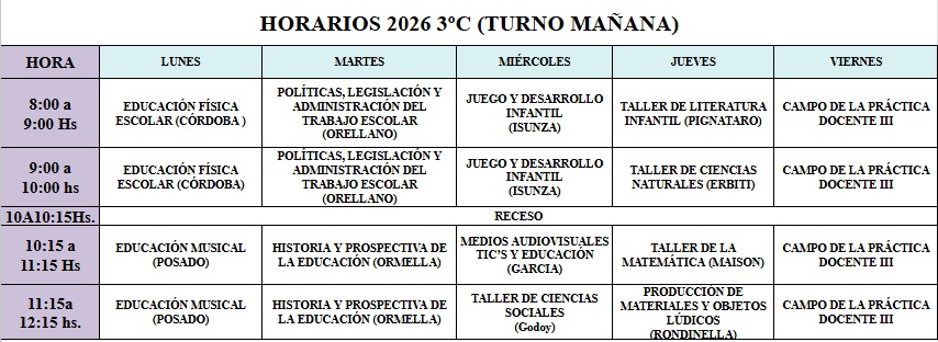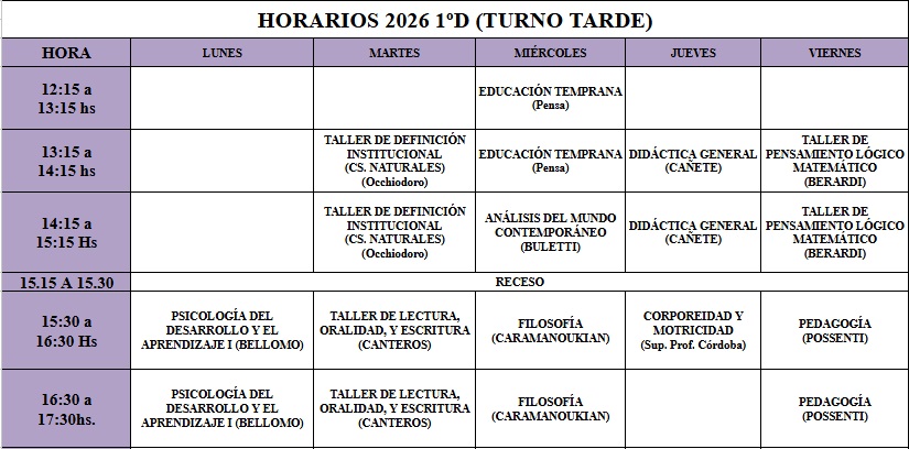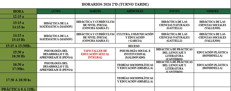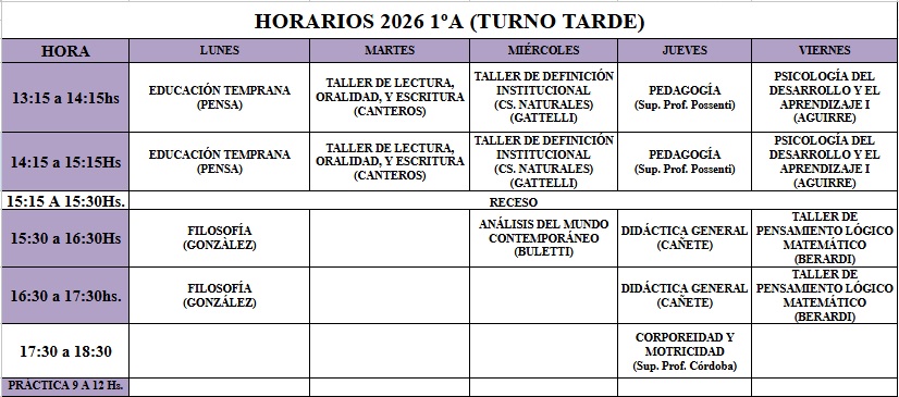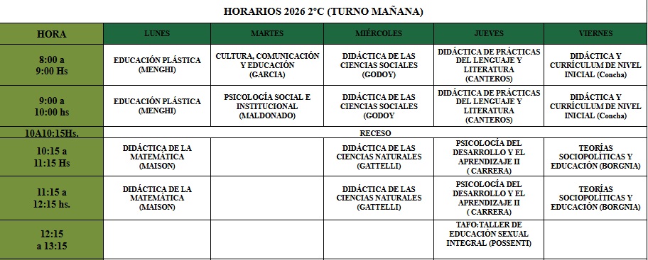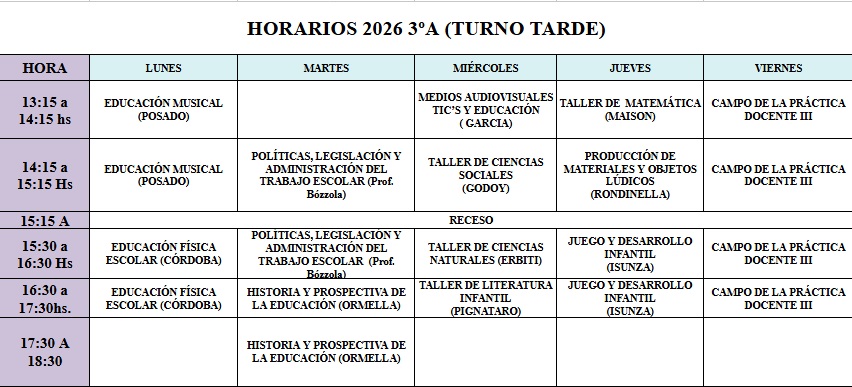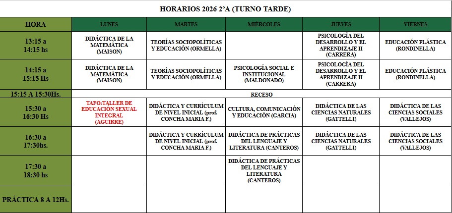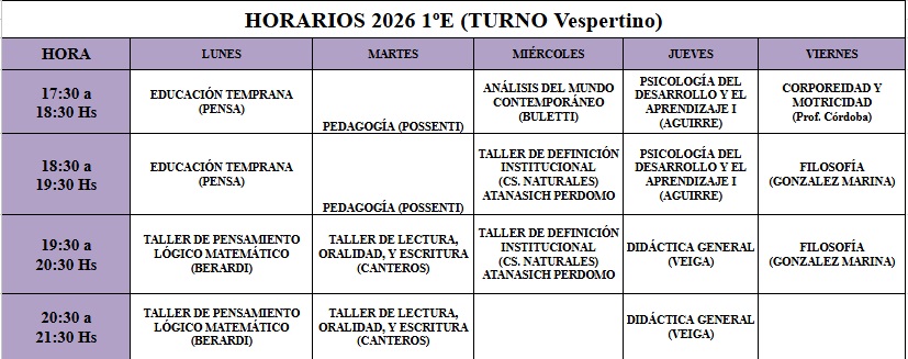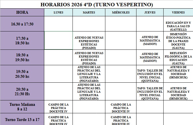 Horarios 2026 Para ver/descargar los Horarios 2026, hacer clic aquí TURNO MAÑANA TURNO TARDE TURNO VESPERTINO